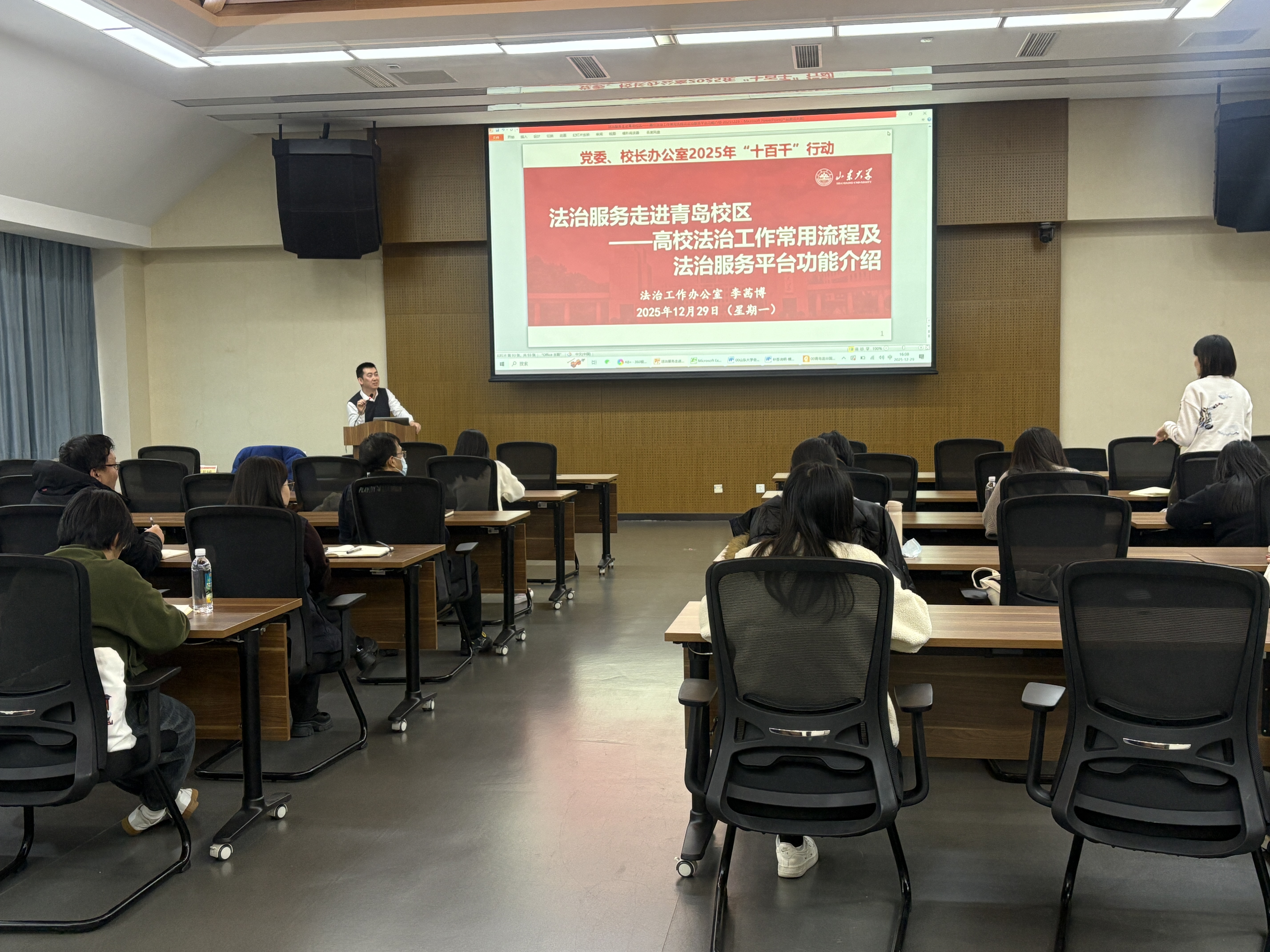 本次培训是“党委、校长办公室2025年‘十百千’行动”在法治工作领域与青岛、威海校区工作进行深度联动的具体实践,也是法治工作办公室主动深入校区,在法治服务与法治宣传教育工作领域递交的一份2025年末答卷。未来,法治工作办公室将继续擦亮“法治山大”系列培训宣传品牌,通过更加系统性、针对性的培训内容设置,着力提升广大教职工的法治素养与实务能力,将法治思维融入校区日常工作实践,为学校治理体系和治理能力现代化精准注入更强法治动能。青岛校区、威海校区各二级单位法治工作联络员及办公室系统工作人员约70余人参加本次培训。